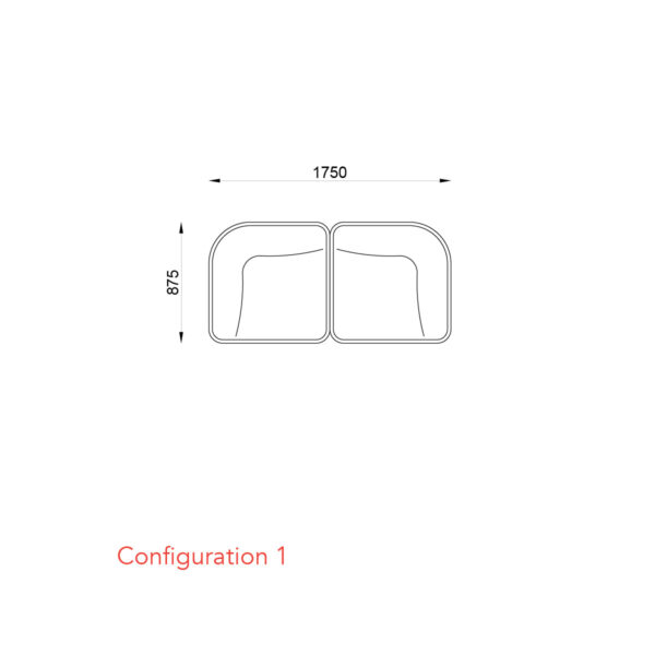Configuration 1: 2 Seater 1750W x 875D x 700H (400 Seat Height) mm